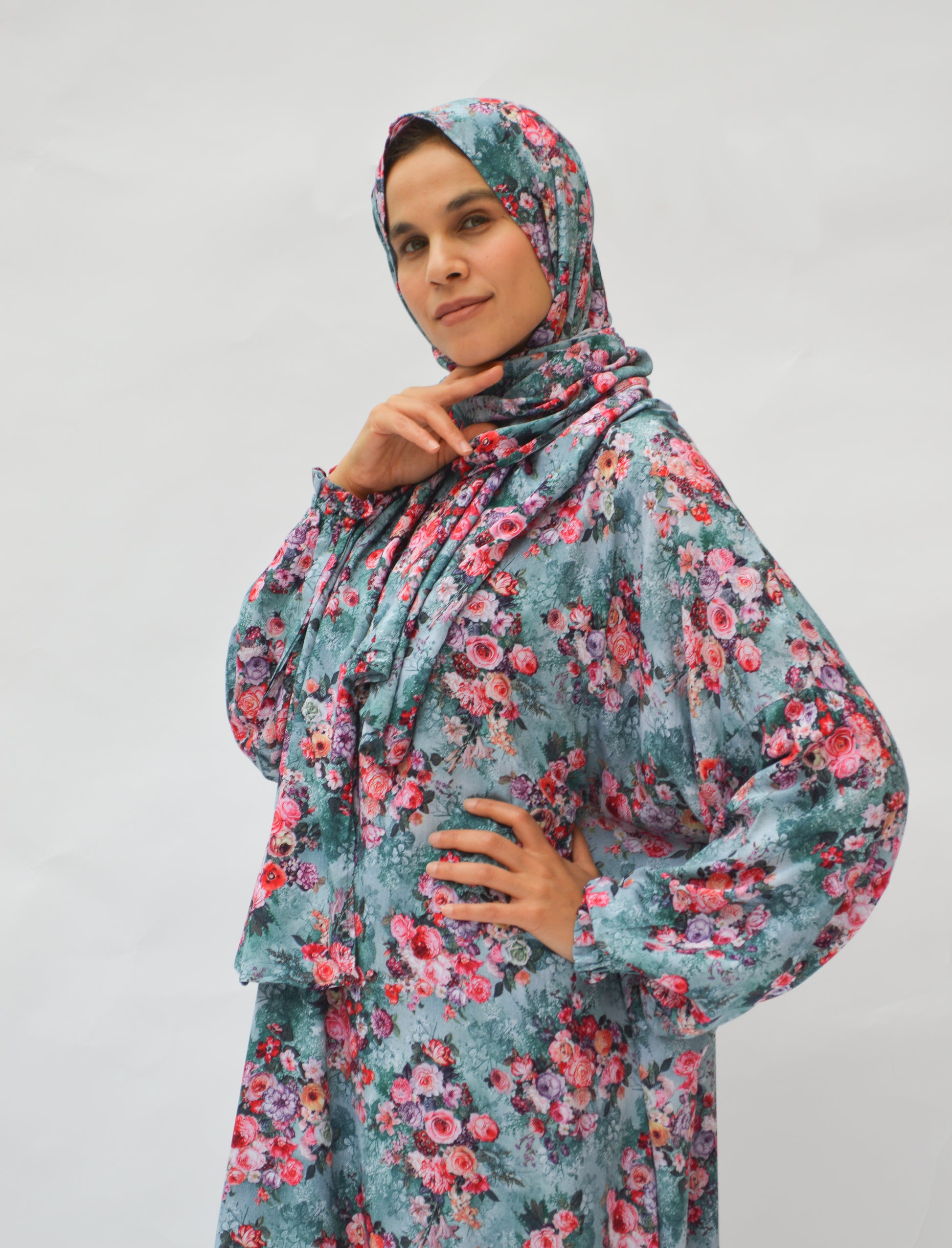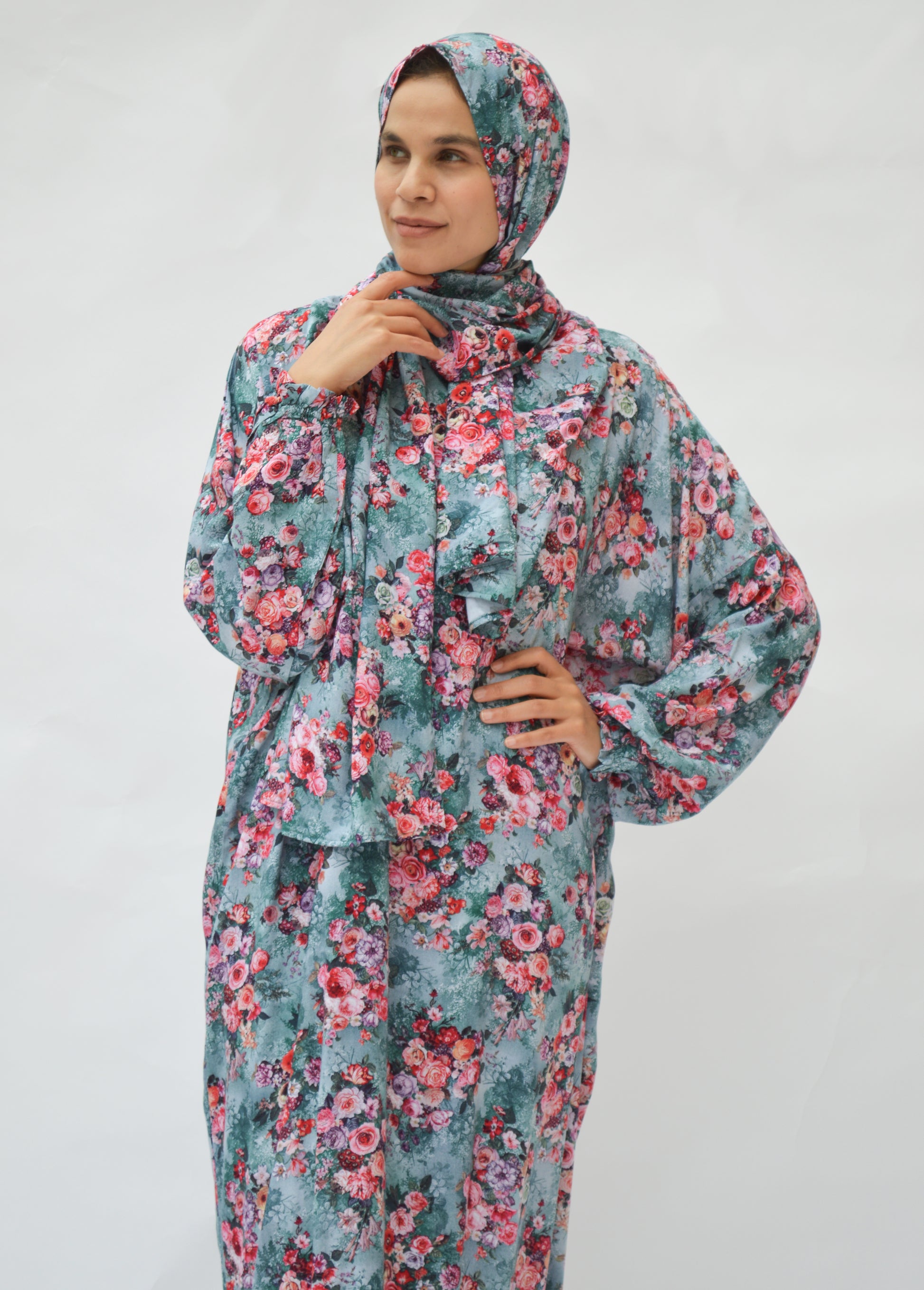 Cotton viscose prayer wear with scarf attached