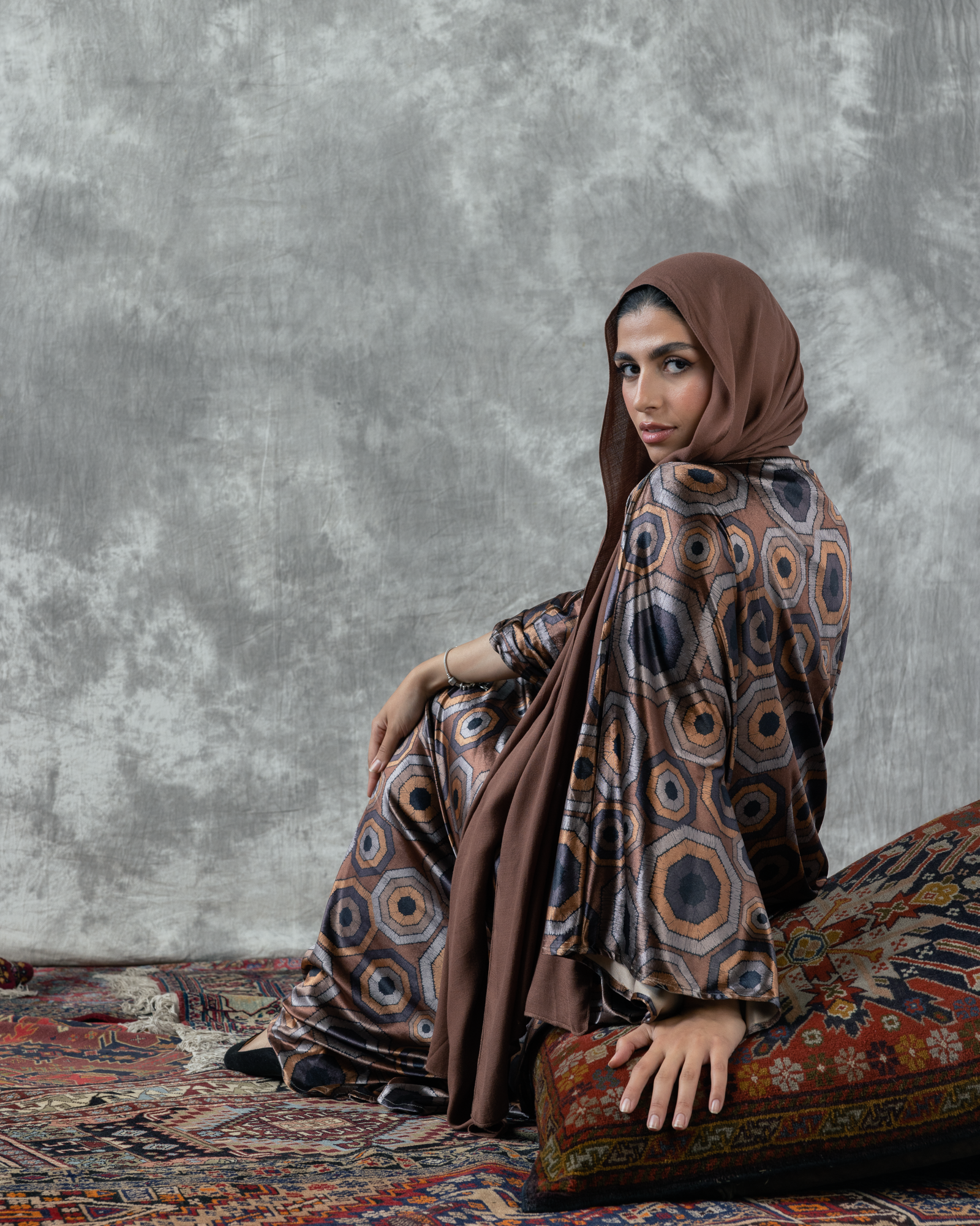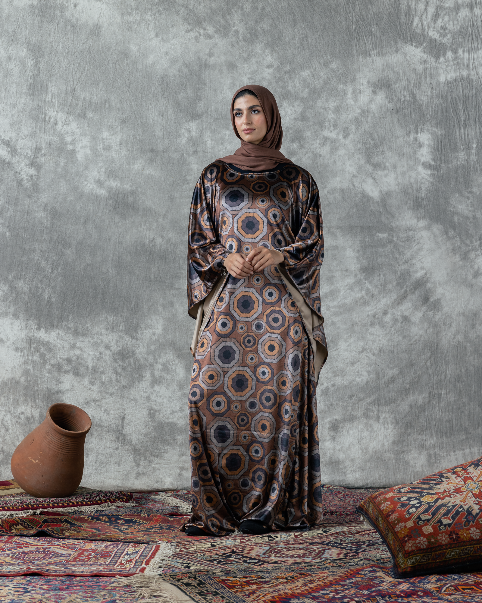 Kaftan jilbab velvet with belt inside Code 777 beige Brown