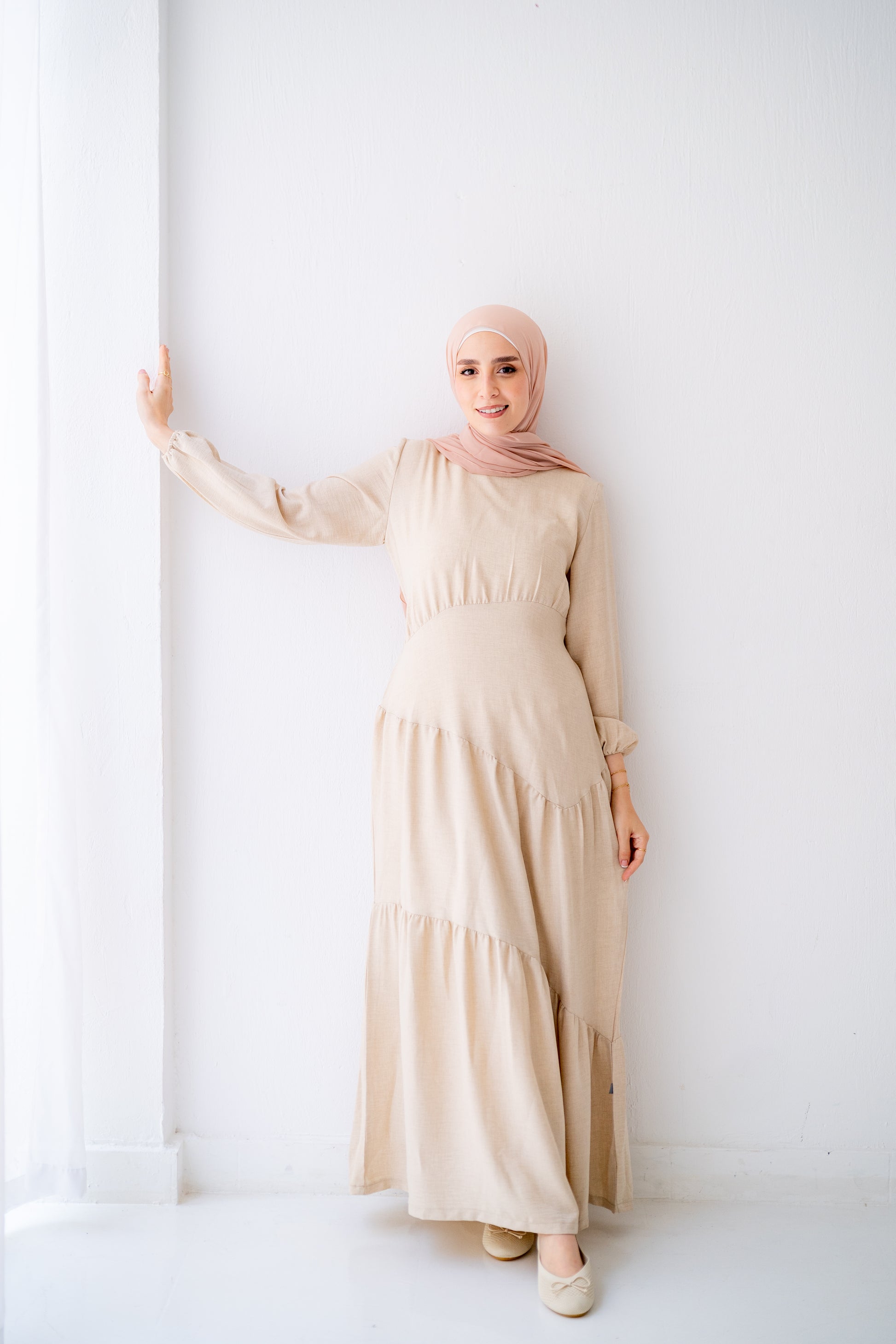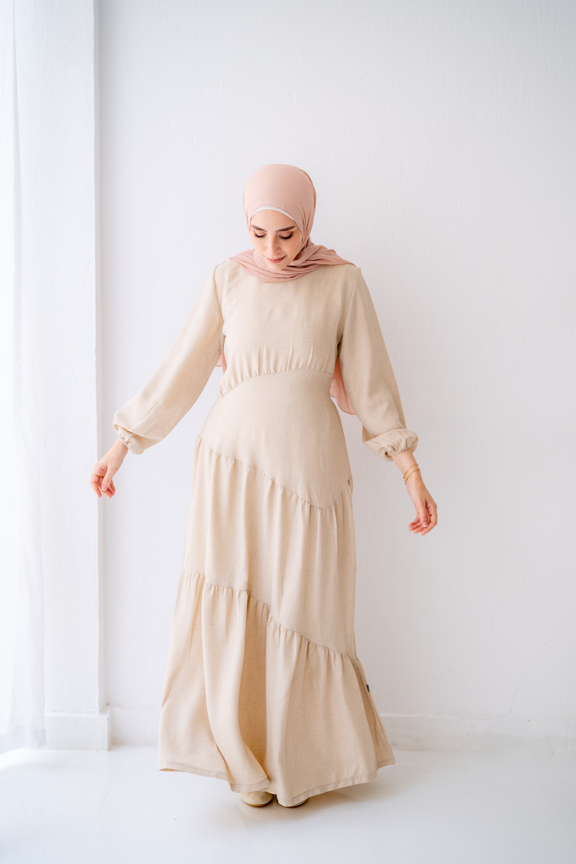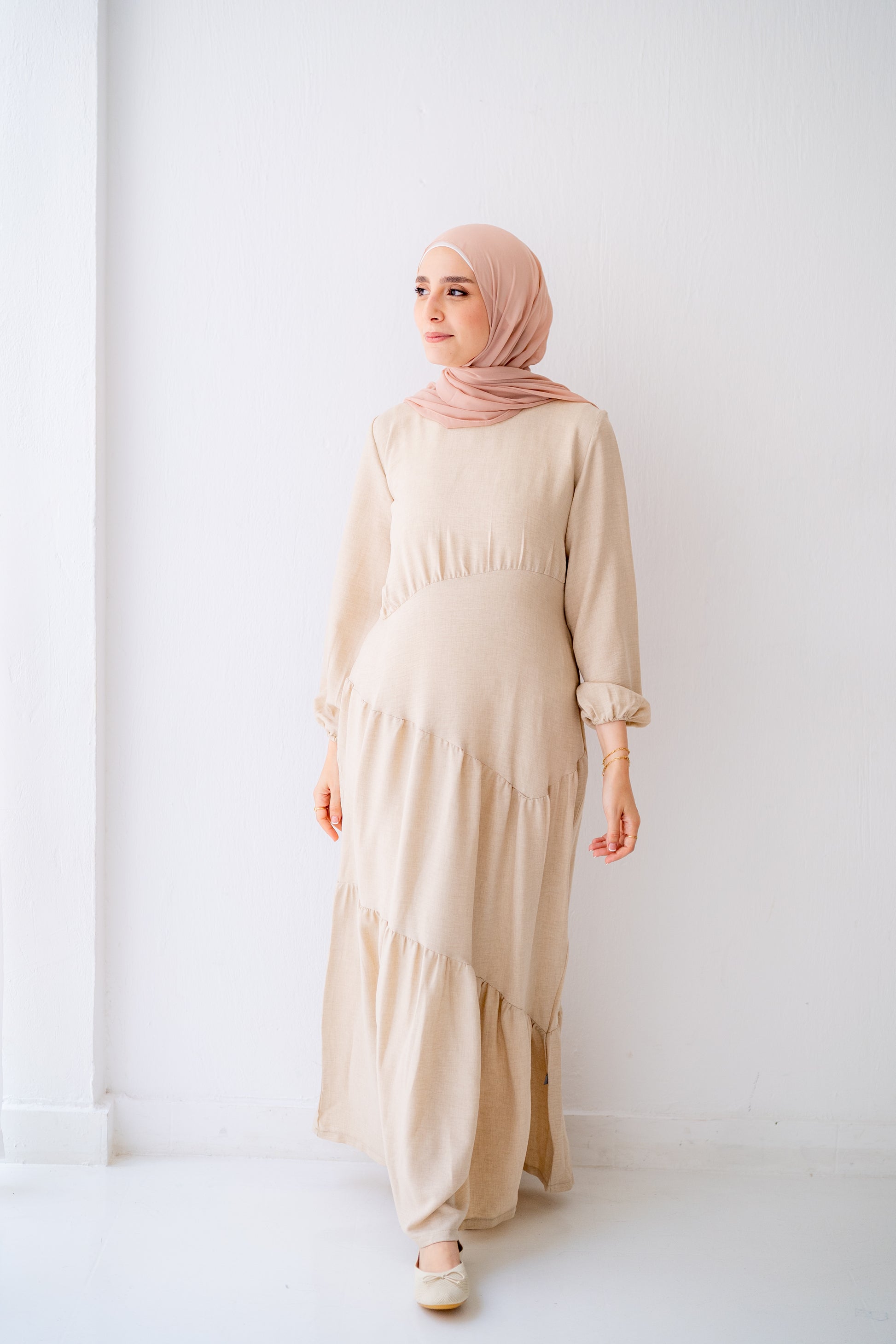 Elegant soft linen dress designed with flowing asymmetric cuts for effortless style and comfort.