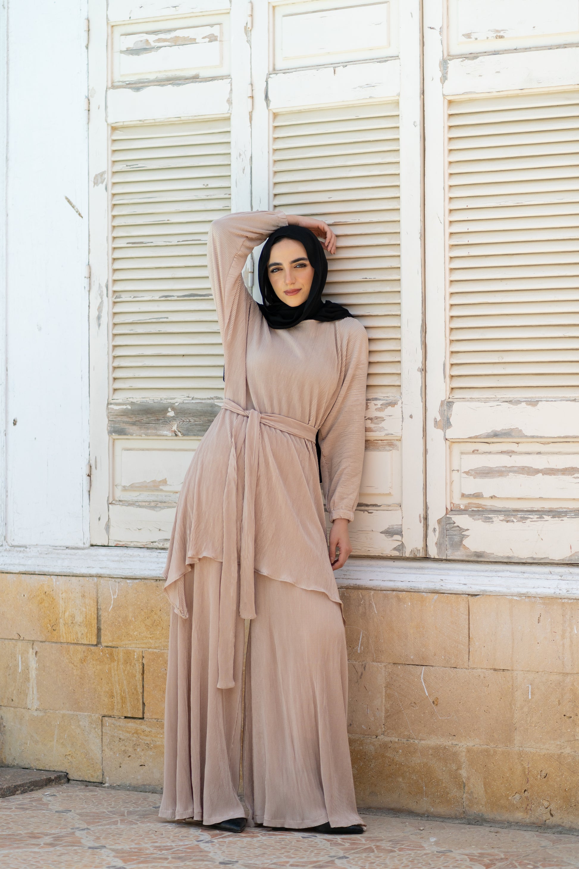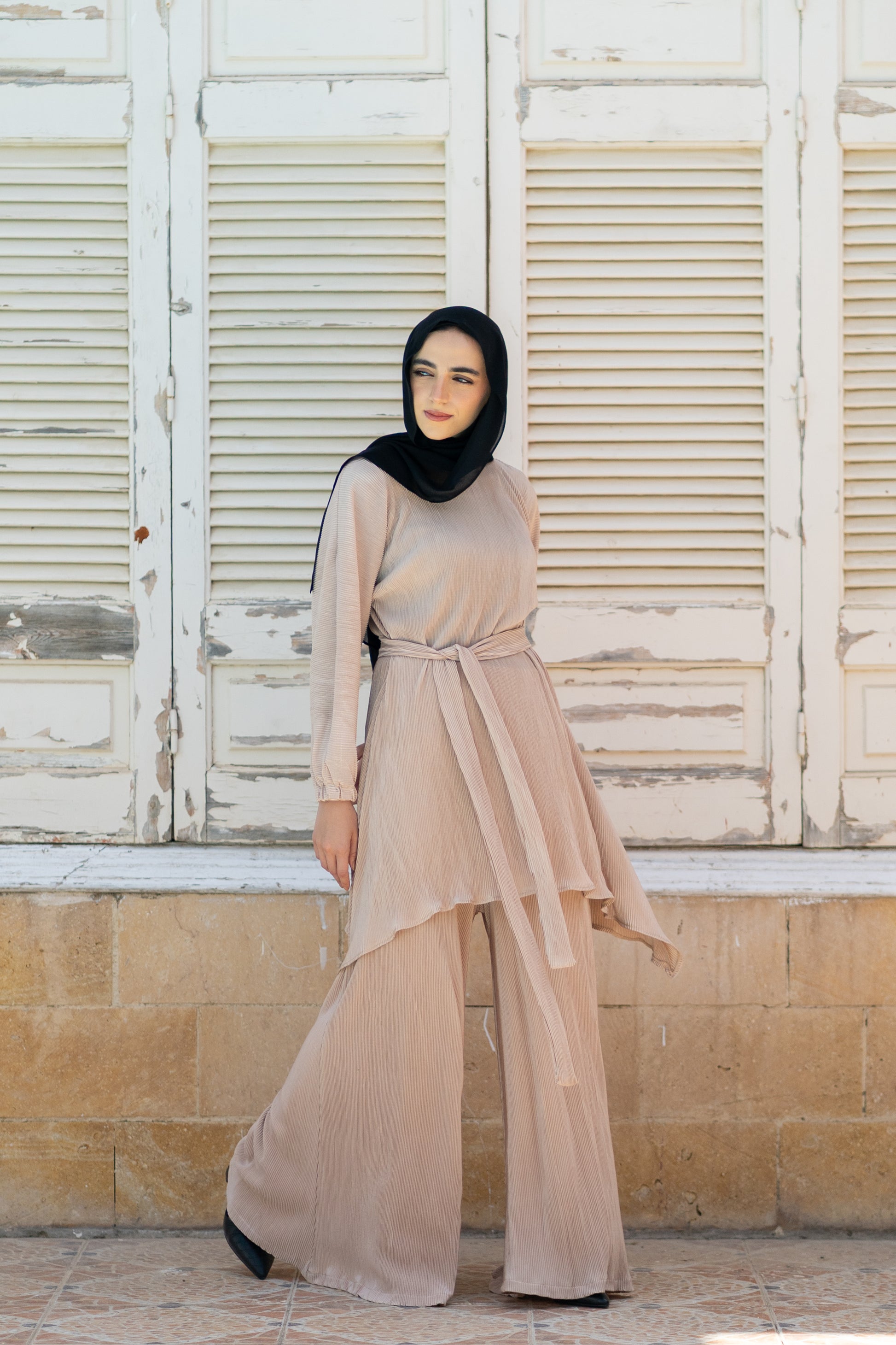 available in three beautiful colors: **Beige, White, and Blue**! This ensemble is perfect for any occasion, combining style and comfort effortlessly.