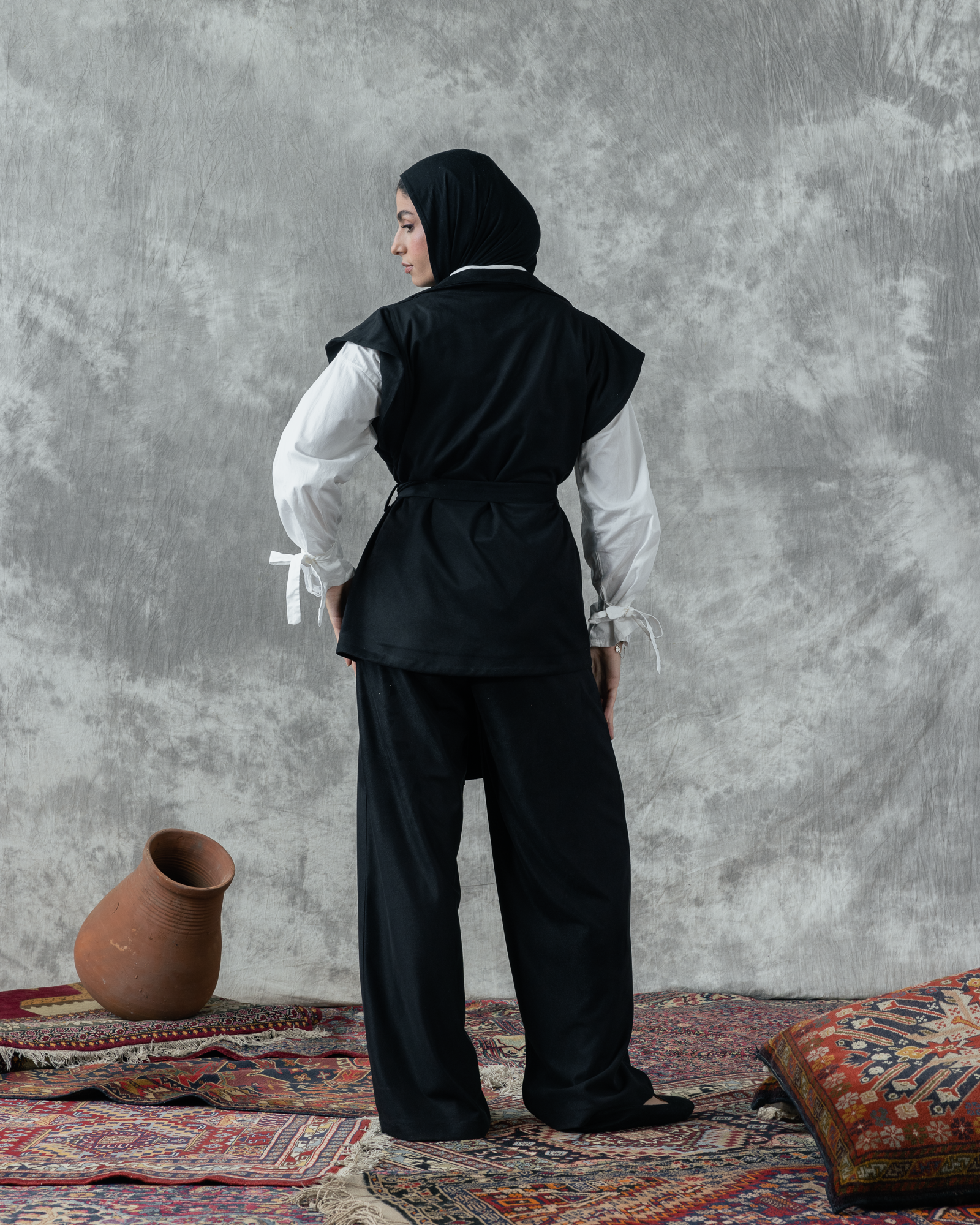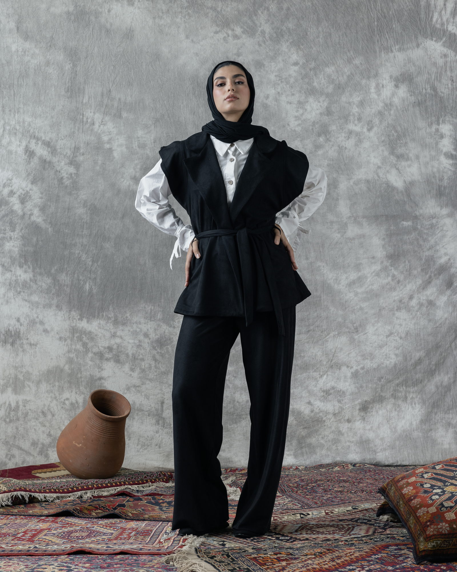 Rib Suede set , sleeveless vest , wide leg pants
