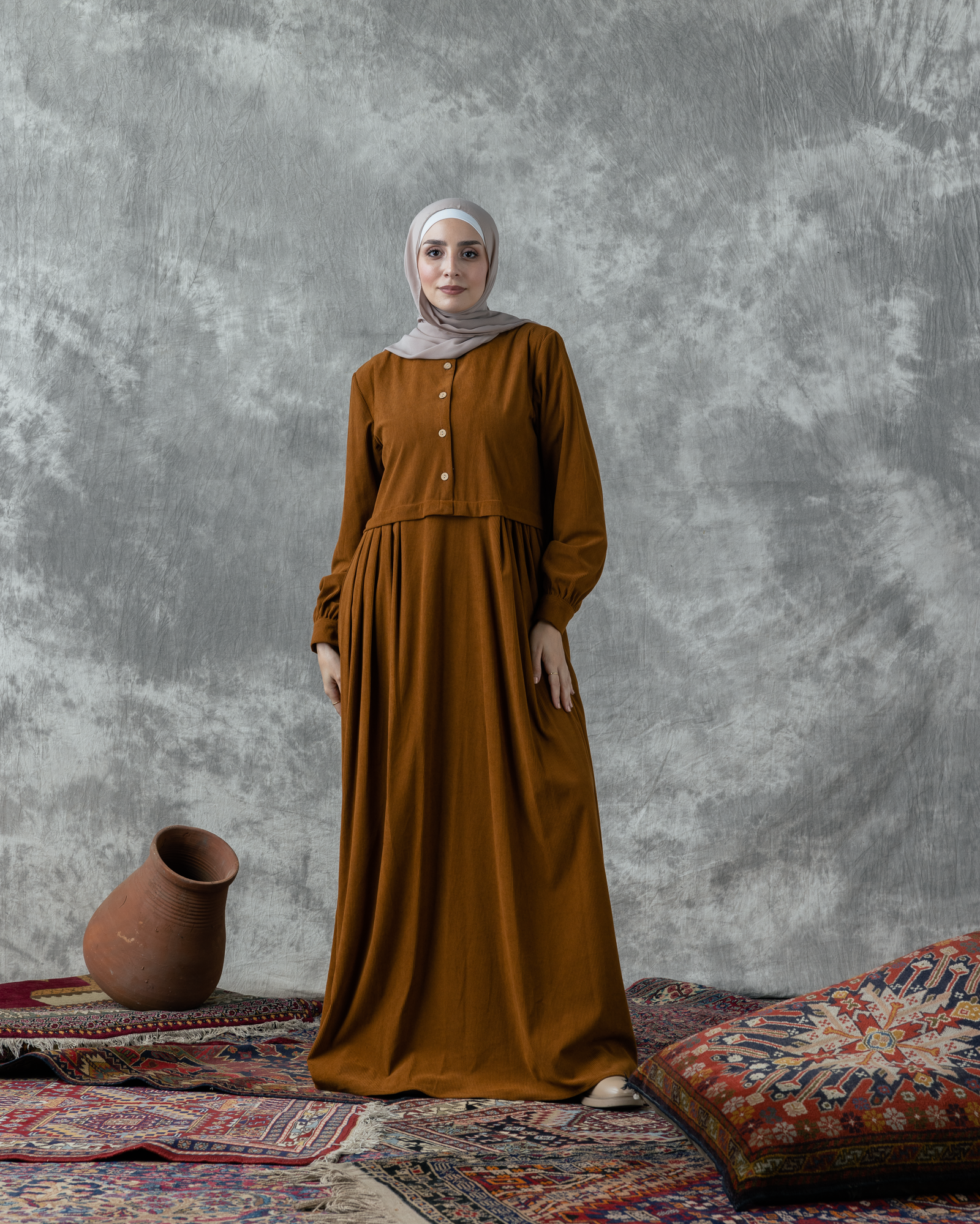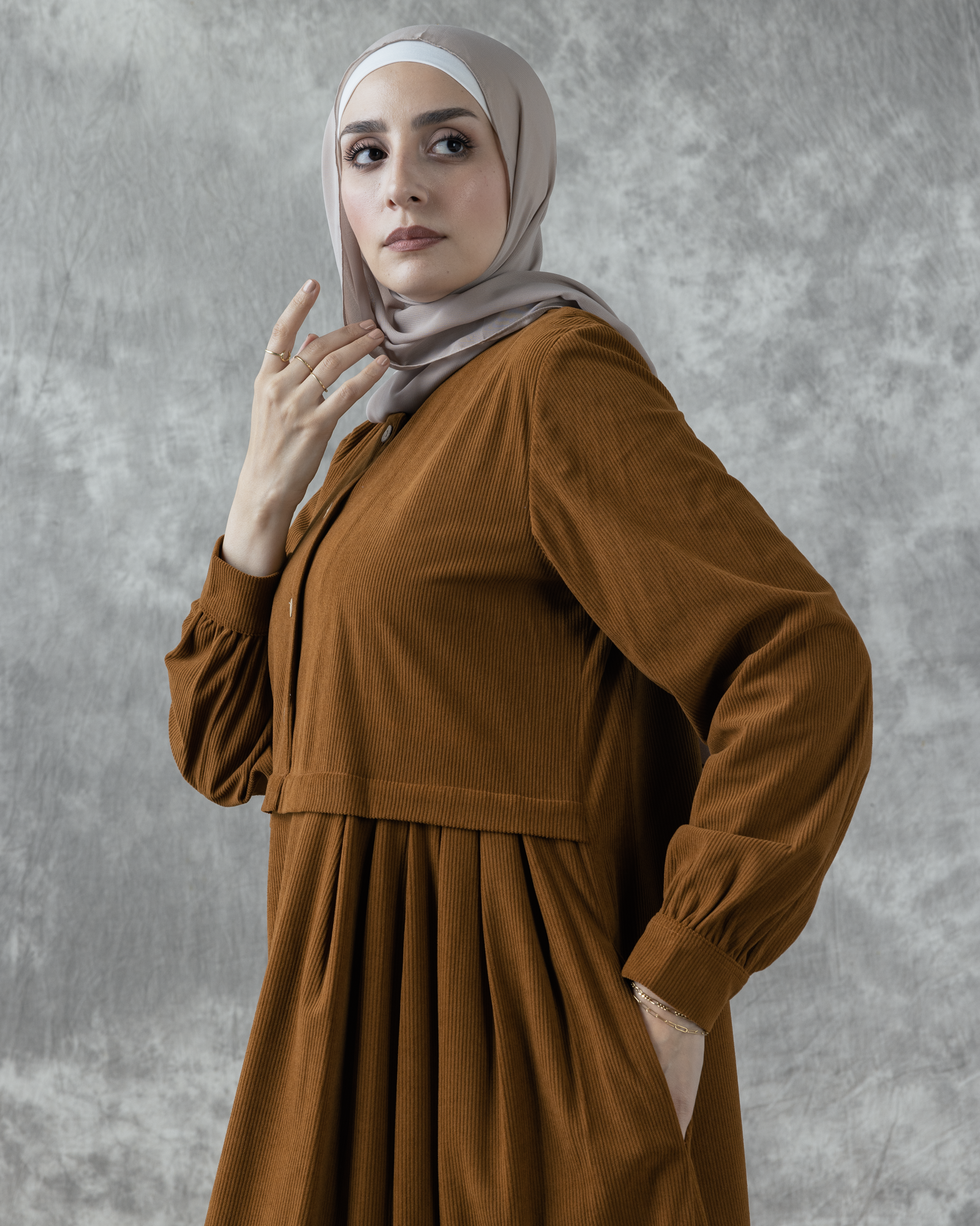 Rib velvet dress with pockets Code FW 108 Dark Mustard