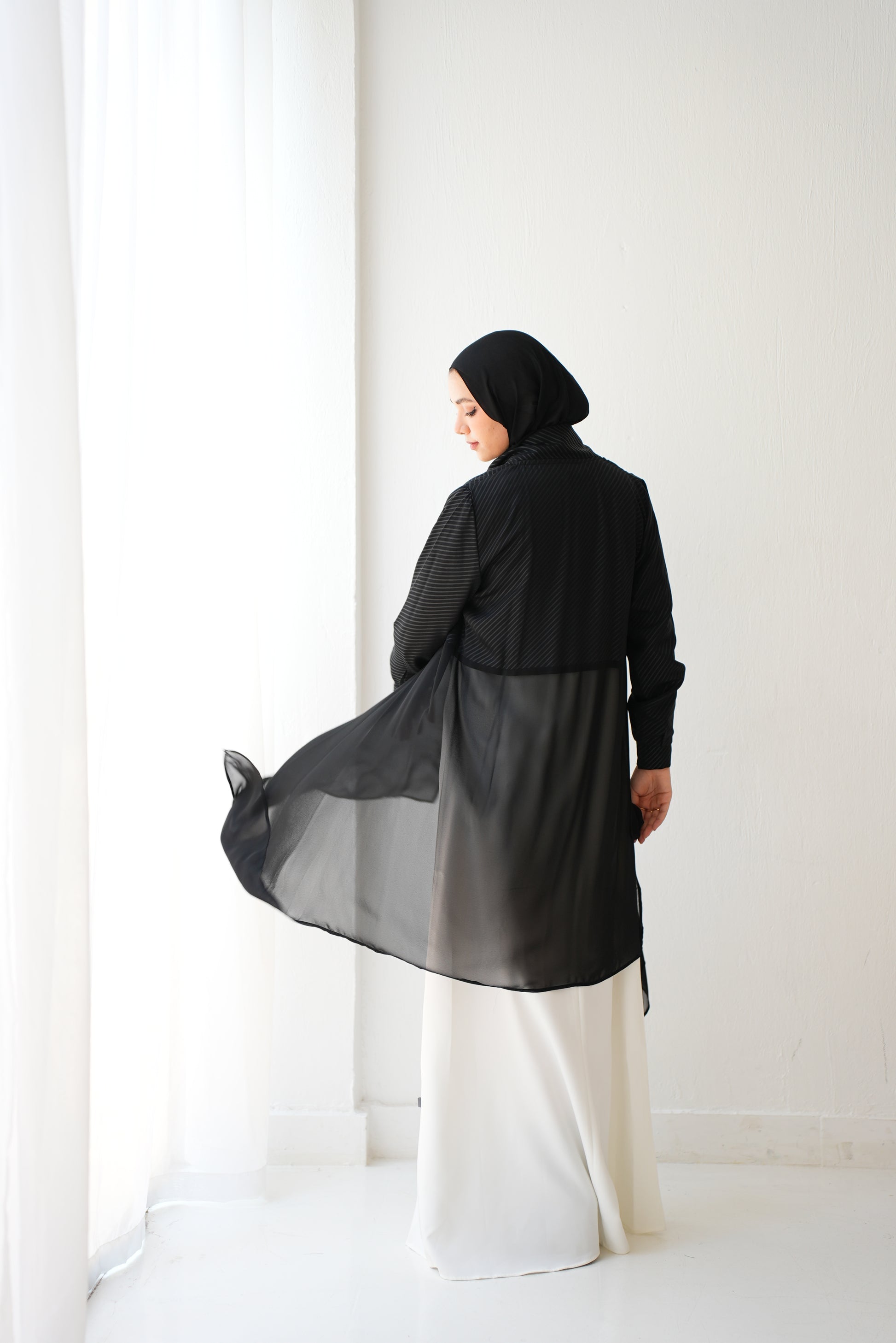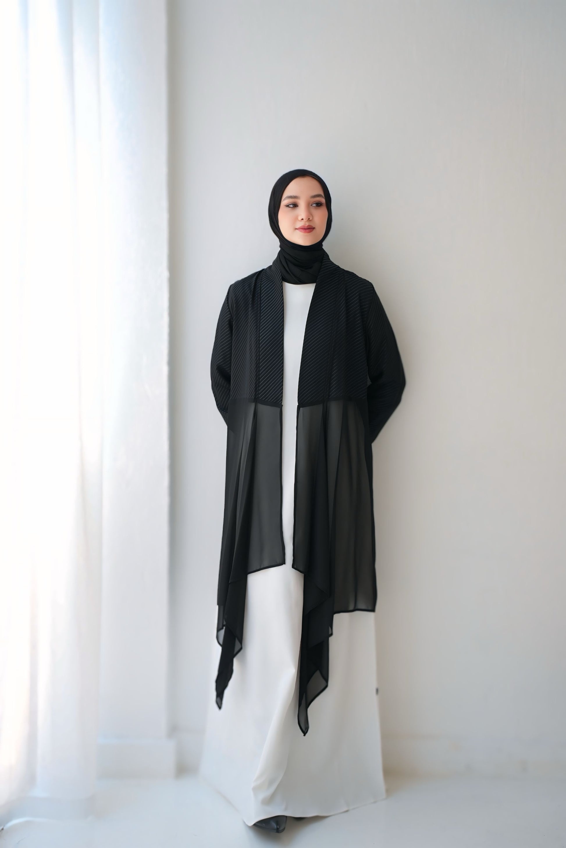 This stunning cardigan features a unique asymmetric design, crafted from luxurious silk and airy chiffon. Whether you're dressing up for a special occasion or looking for a chic layer to complete your everyday look, this piece is a must-have