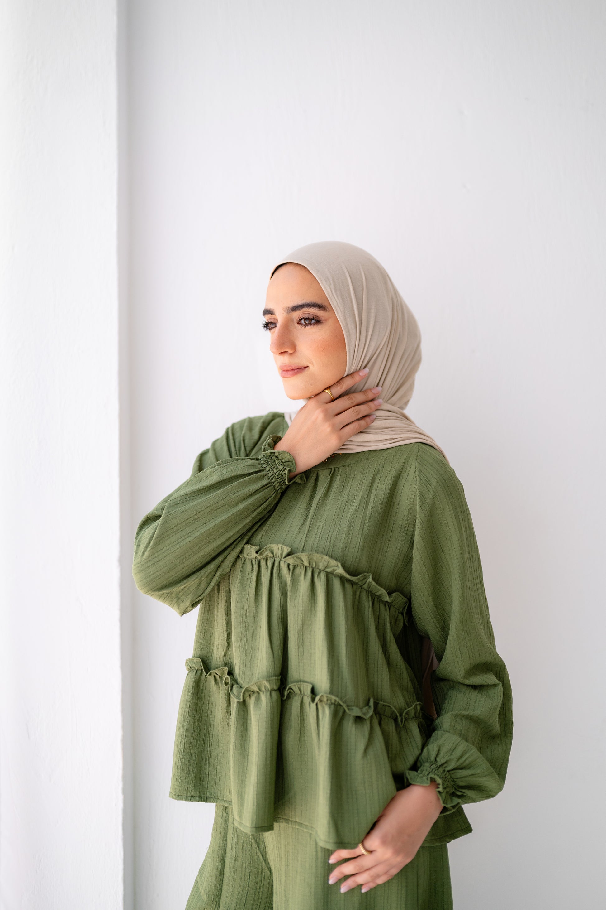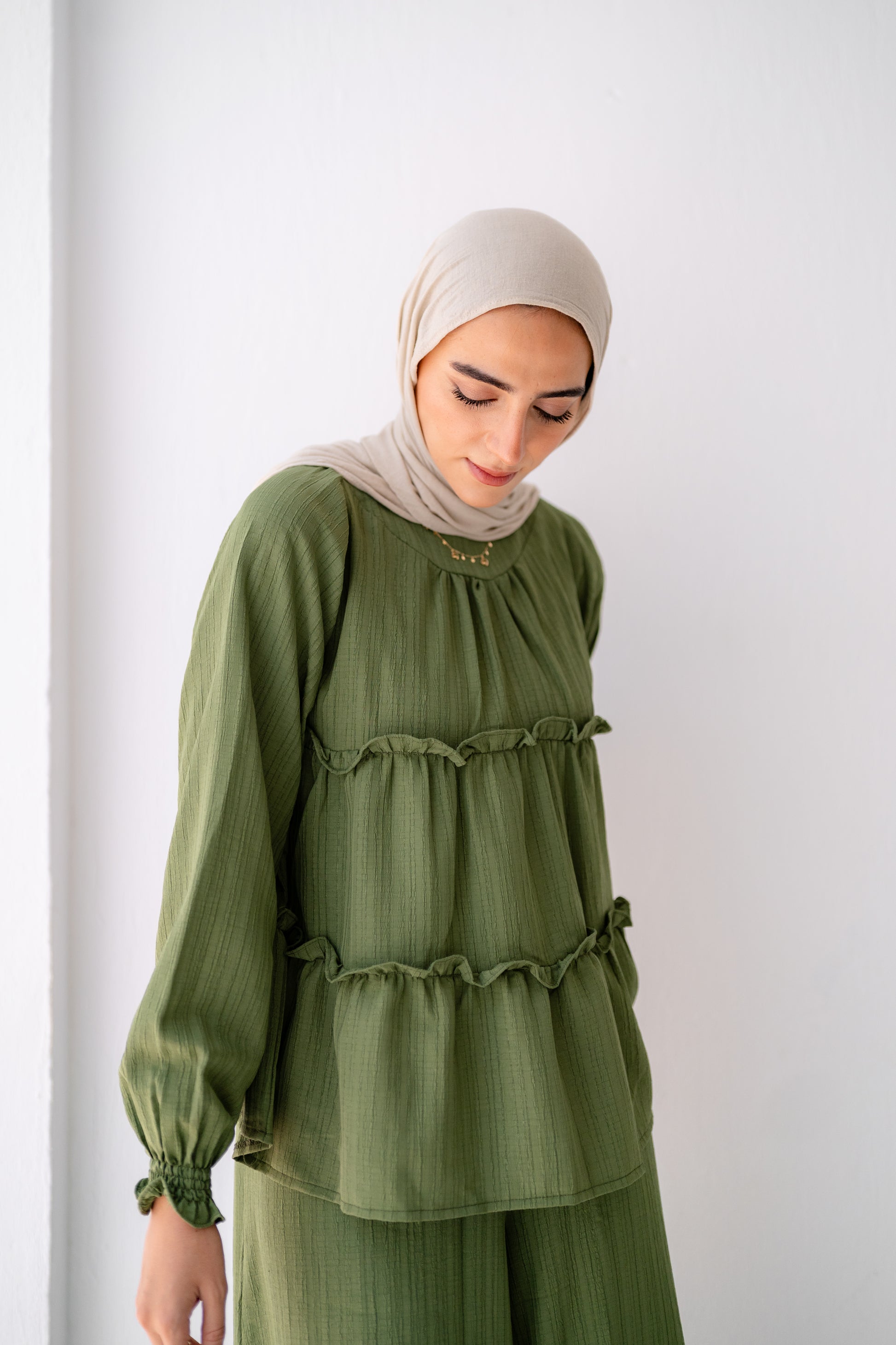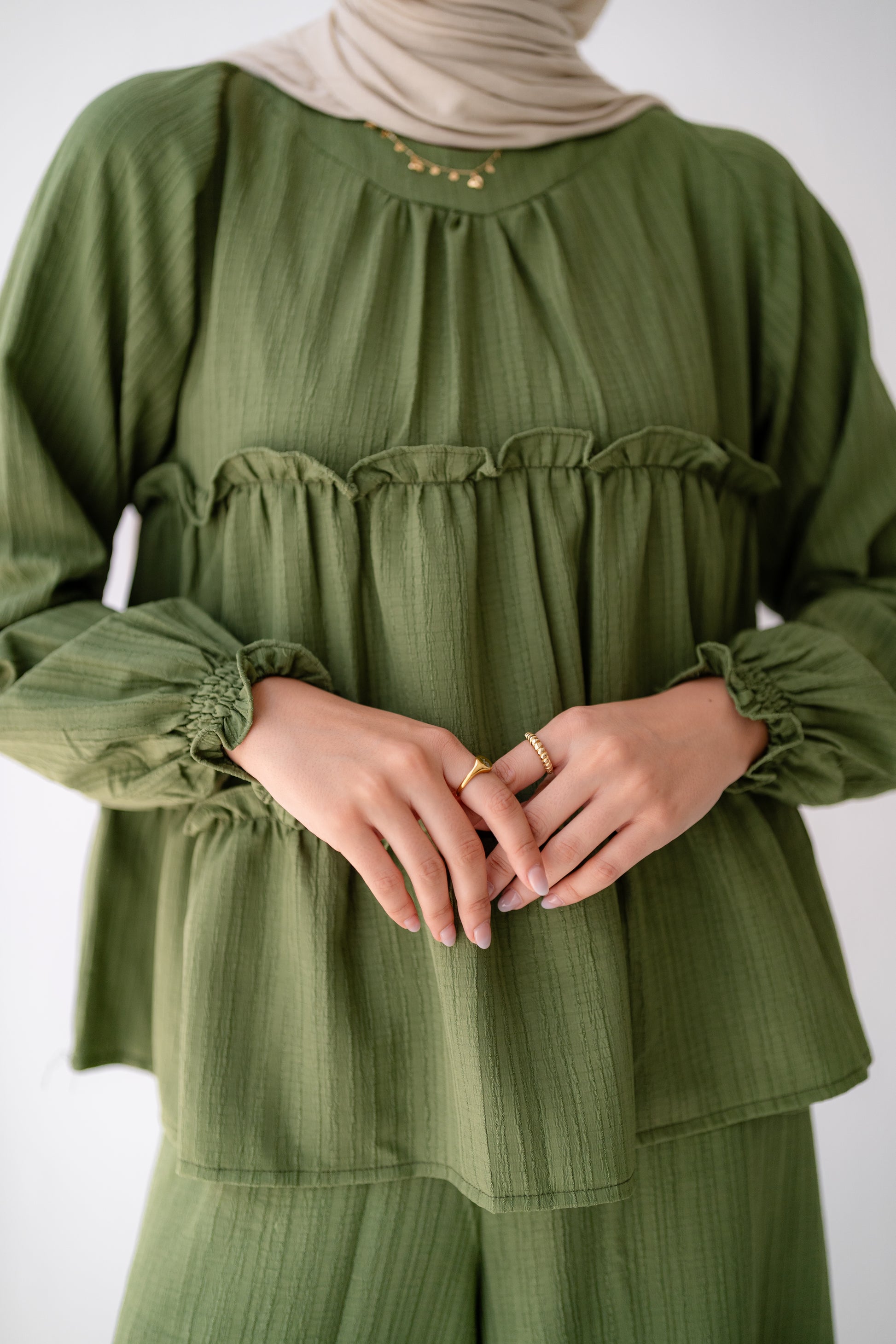 Soft Crinkle ruffled Blouse Code 402 Olive