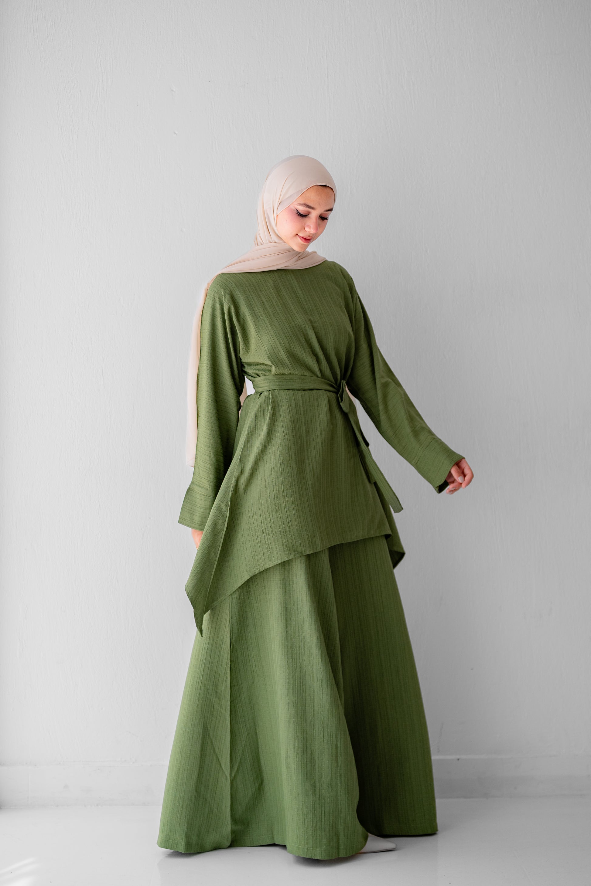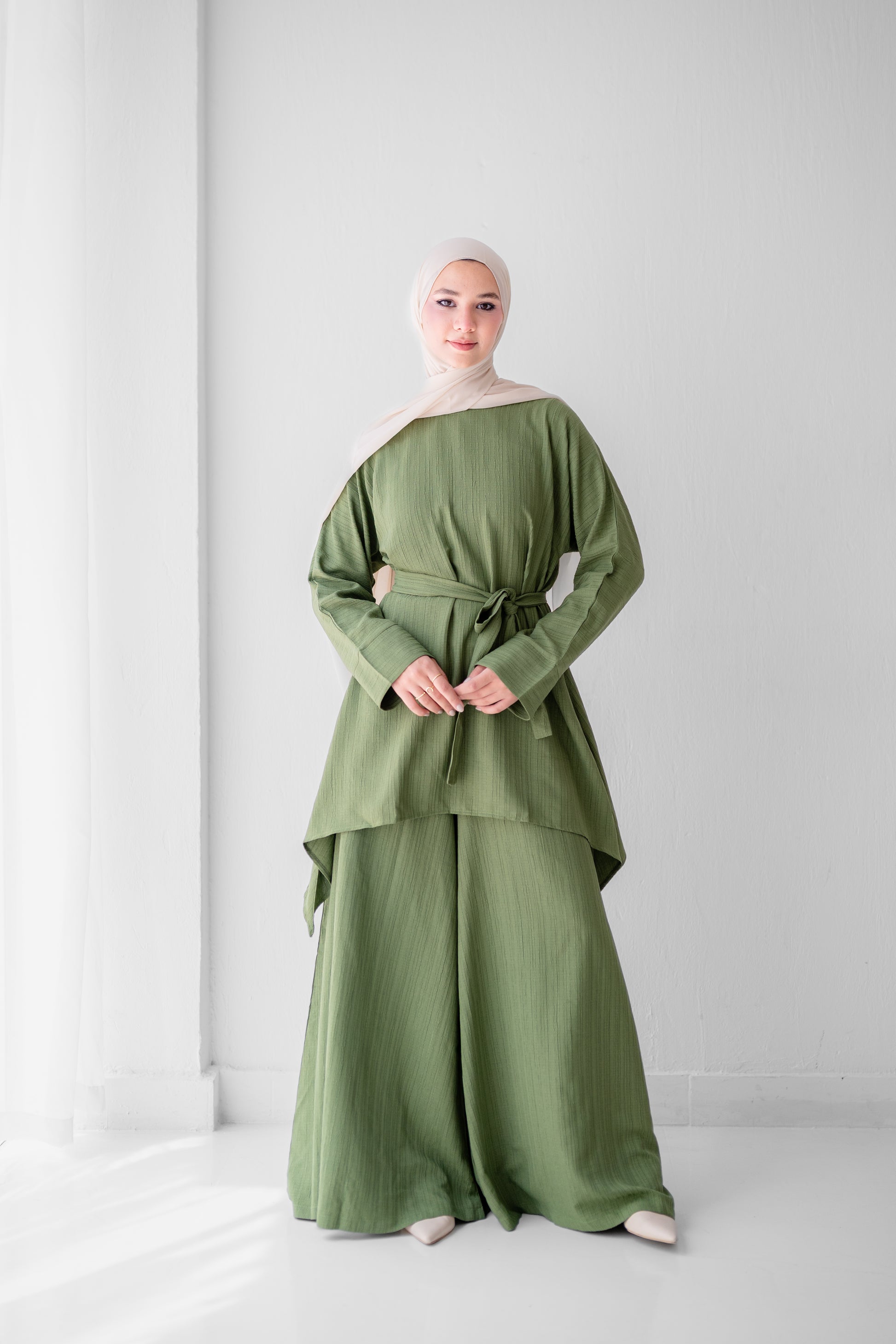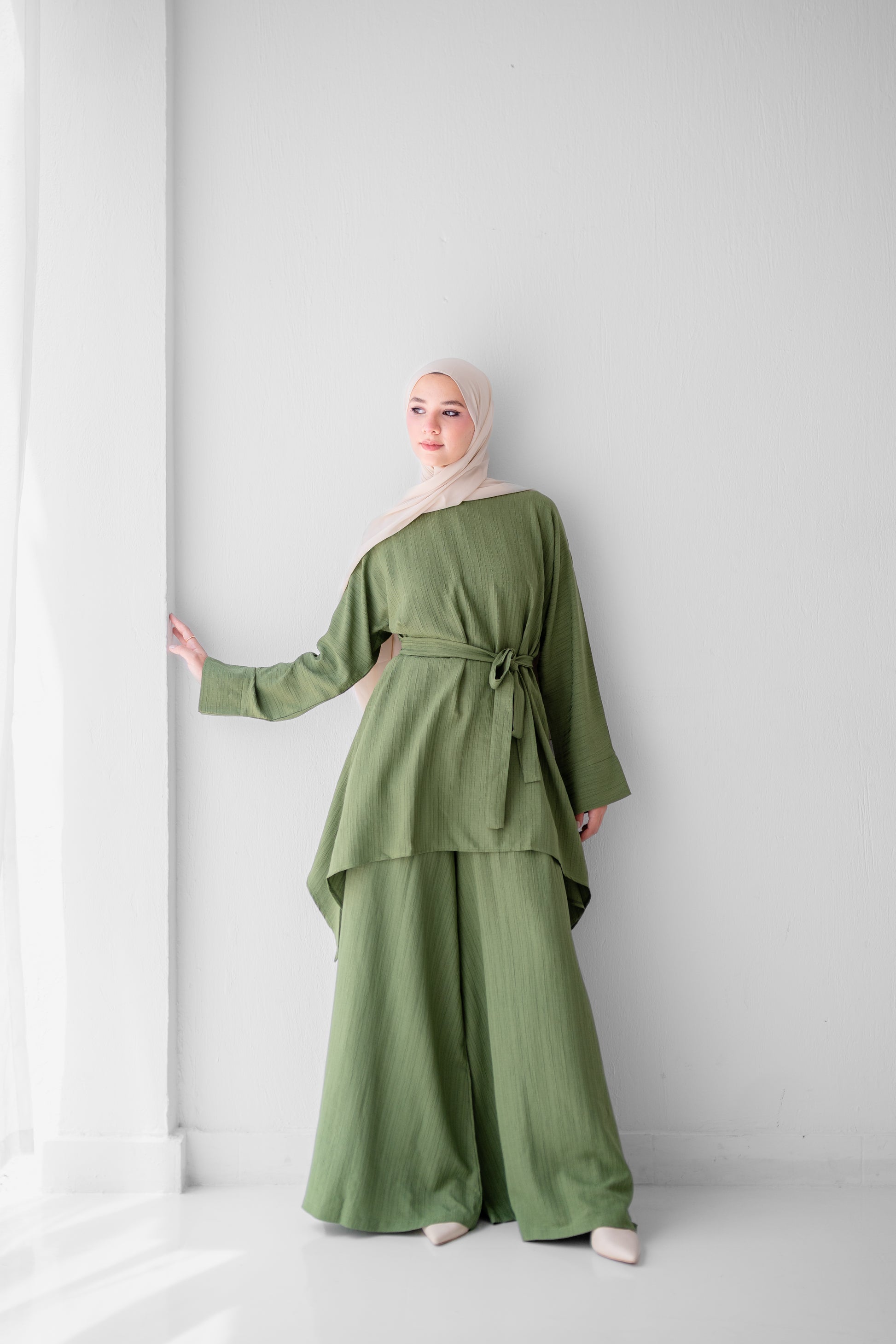 Crafted from soft crinkle fabric, this set features a flowy wide-leg pants and a relaxed top with a waist tie belt for a flattering silhouette.