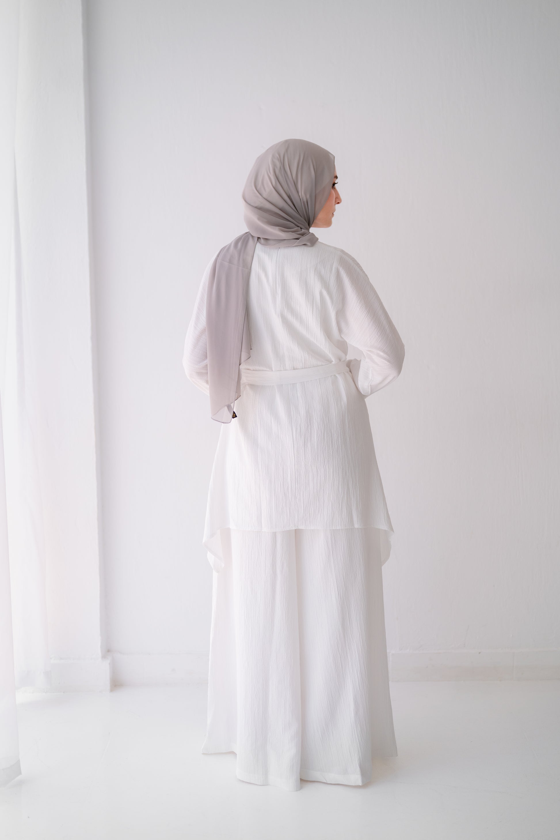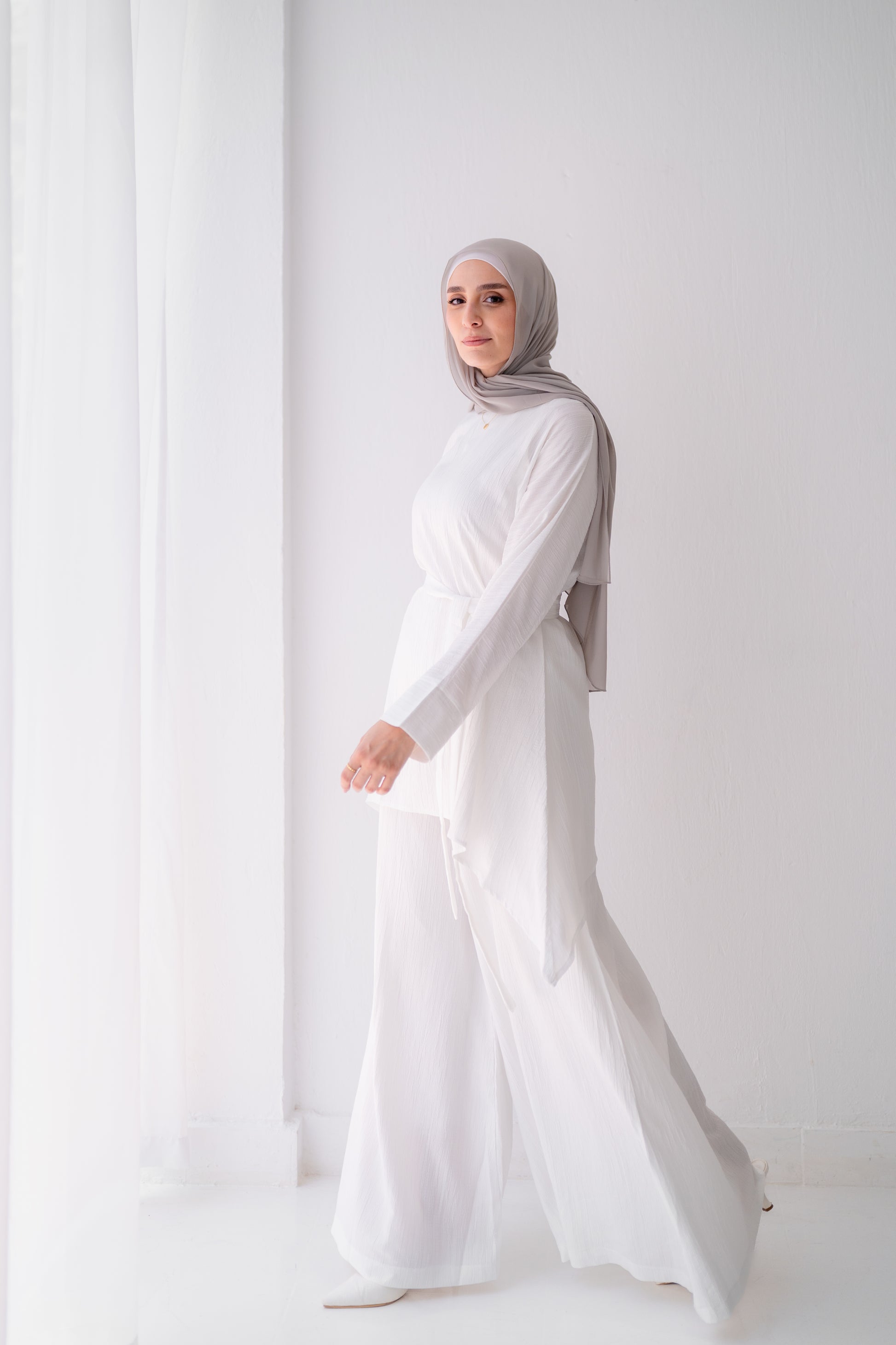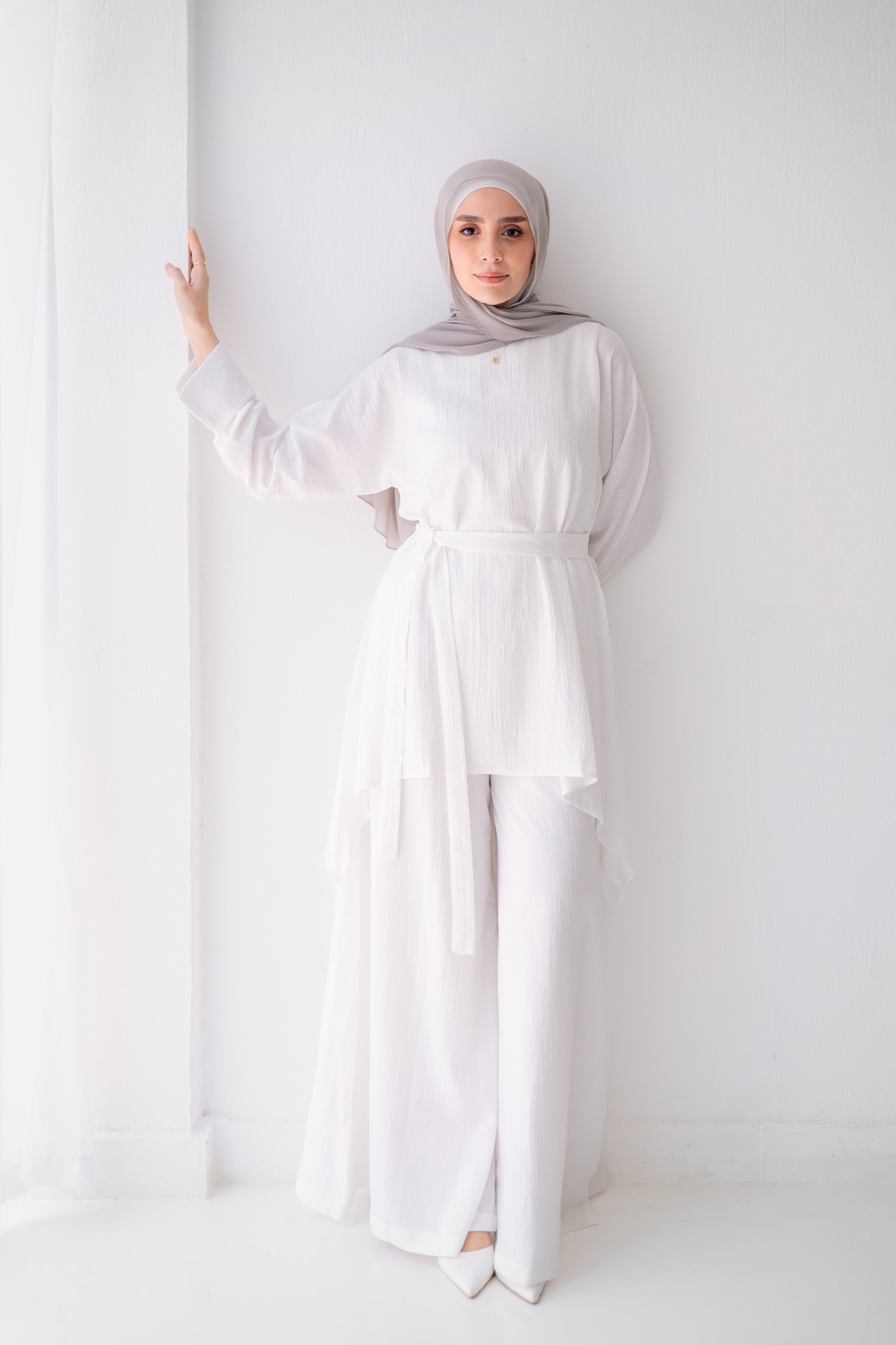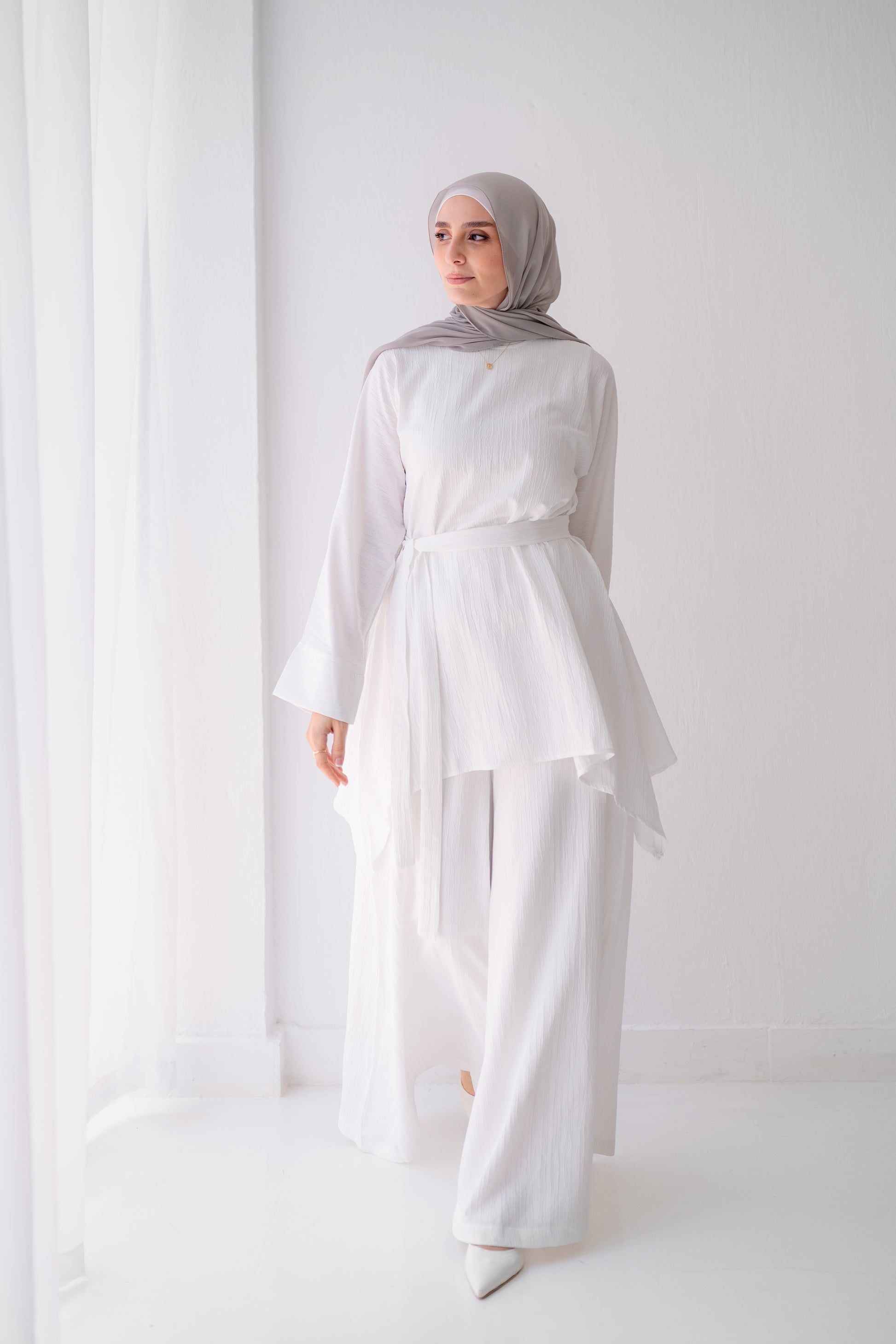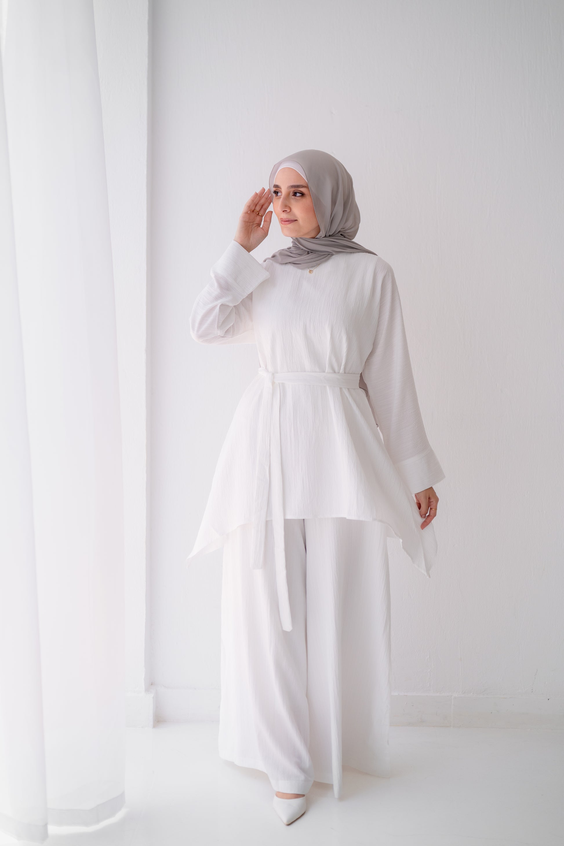 Crafted from soft crinkle fabric, this set features a flowy wide-leg pants and a relaxed top with a waist tie belt for a flattering silhouette.